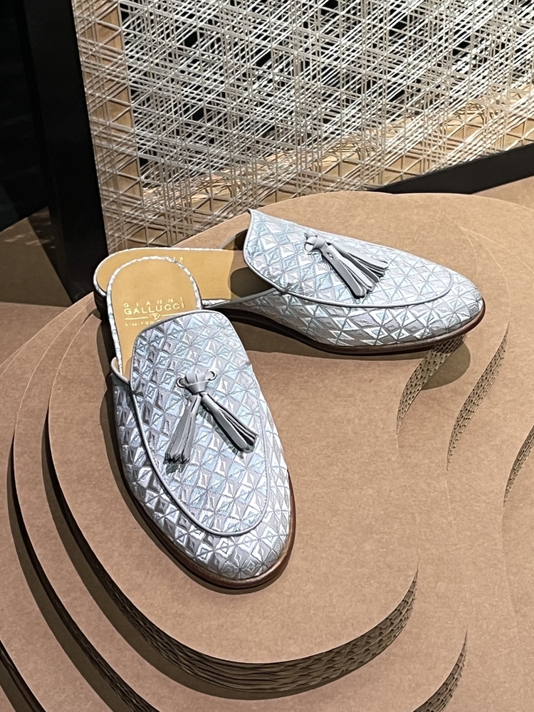 イタリアと日本の文化の融合で「キモノシューズ」と呼ばれている工芸品だそうです。