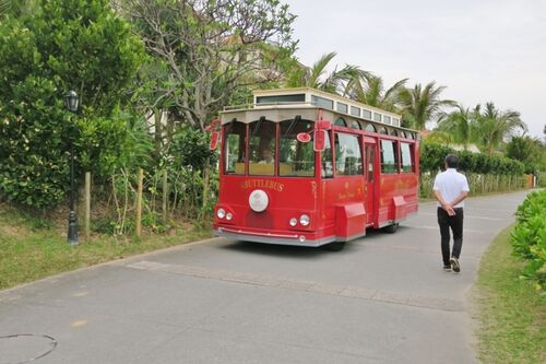 二時間ほど部屋でゆっくりしてちょっと散歩に出てみました。海岸沿いの道をこんな ↑ お洒落なバスが無料で行き来しています。でも私たちは北から南へ歩きました。今日のお散歩コースです。(クリックで大きくなります)あ~私たちの部屋はあそこね~と見上げ…