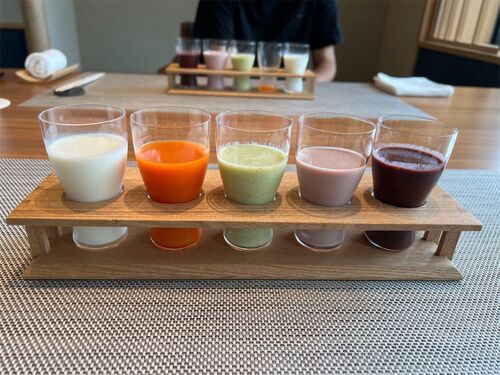 二日目朝食 JAL2010便 まとめ 二日目朝食 おはようございます。 今朝のジュースは 牛乳、にんじん、 スムージーキャベツキウイヨーグルト いちご豆乳バナナ、アサイを選びました。 和食ですが昨日とは別のお料理で楽しめました。 全体的には美味しいのですが…