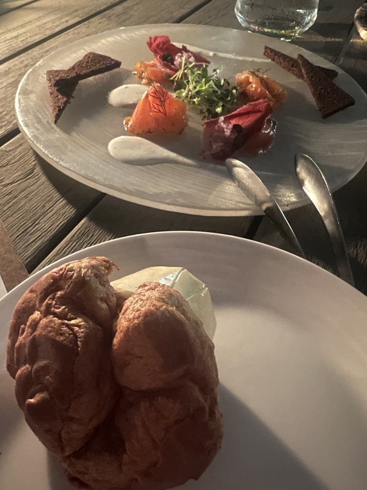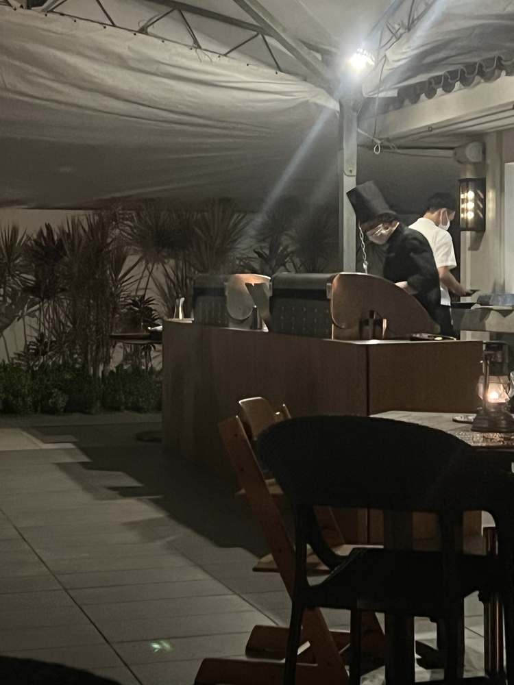 風が少し強かったのですがかろうじてアウトエリアで外気にあたりながらいただけました。