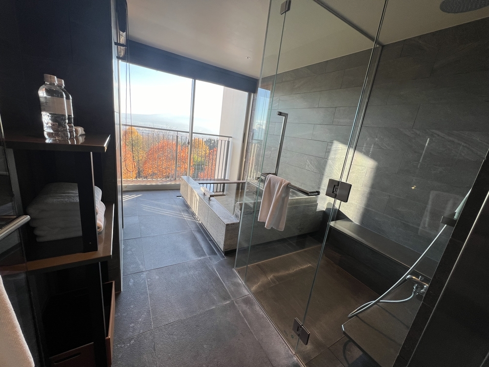 景色を見ながらゆっくり湯につかり、目を覚まします。